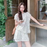 小香风蕾丝T恤短裤套装女夏2025新款流行两件套超火氛围感爆款